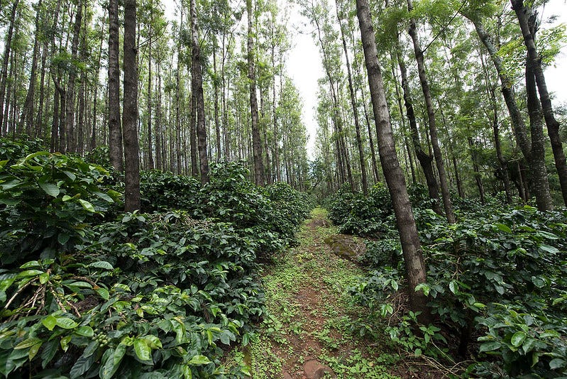 Coffee farms in India are home to abundant wildlife, including tigers and elephants, because of the forest-like conditions. Compared to shade grown coffee in other parts of the world, coffee in India is grown in dense shade conditions, and almost intercropped with peppercorn, cardamom, areca nut, oranges, bananas, and other crops. By law, those who work on coffee farms must be paid minimum wage. Though the system for determining this wage in different sectors is complex, coffee workers in India tend to make more than the world-wide average. They also receive child care, maternity leave, free housing, and pensions.